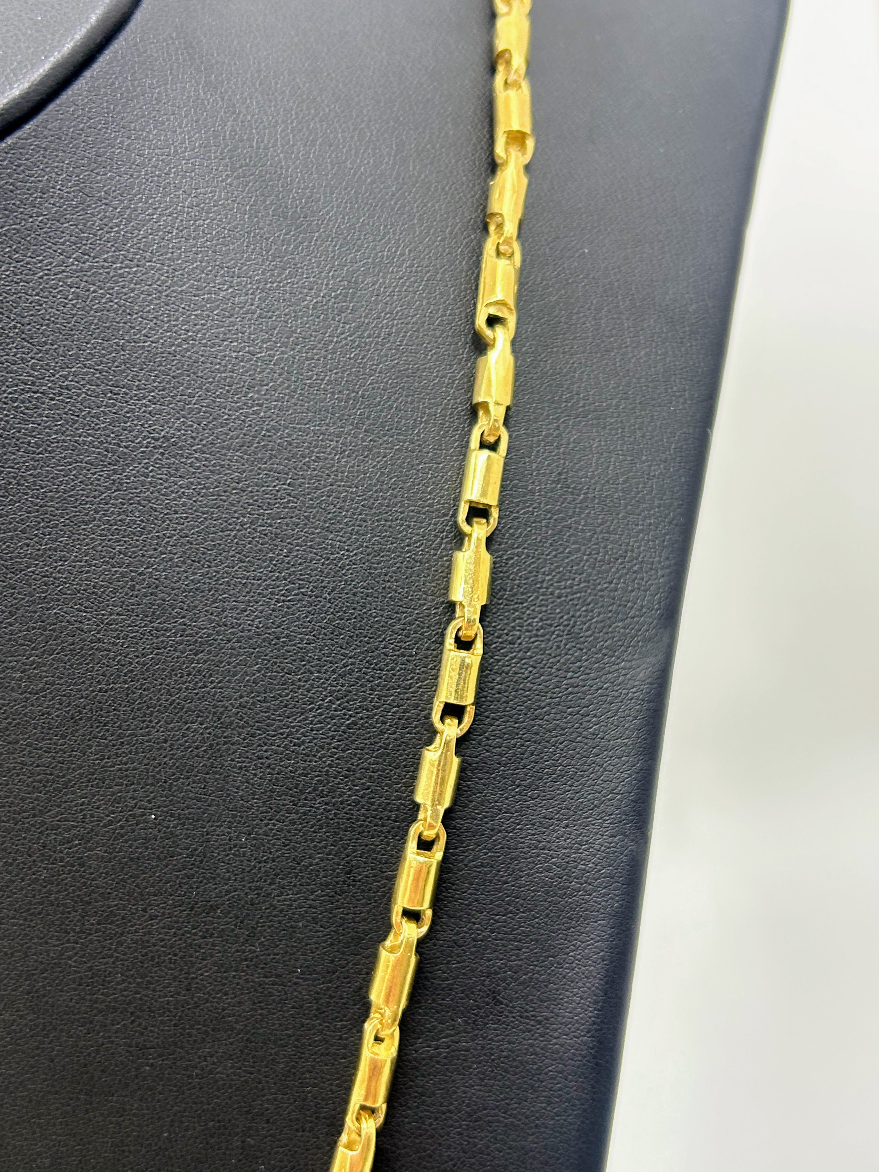 This 10k gold bullet chain features a robust 4.5mm link design, offering substantial presence without excessive weight. Crafted from genuine 10k gold, it delivers durability and lasting luster suitable for everyday wear or layering. The classic bullet link style provides a timeless aesthetic that complements both casual and refined looks. At $100 per gram, this chain represents solid value for quality gold jewelry. Perfect as a standalone statement piece or as a foundation for pendant customization.