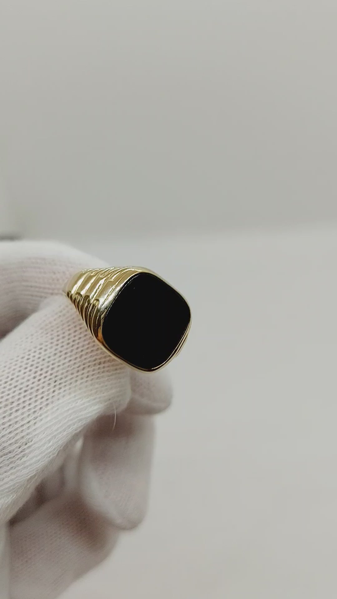 Make a bold statement with this stunning 10K gold Square Onyx Ring! The unique Italian craftsmanship and elegant square shape make it the perfect jewelry piece to enhance any look. Show off your style with this luxurious ring!