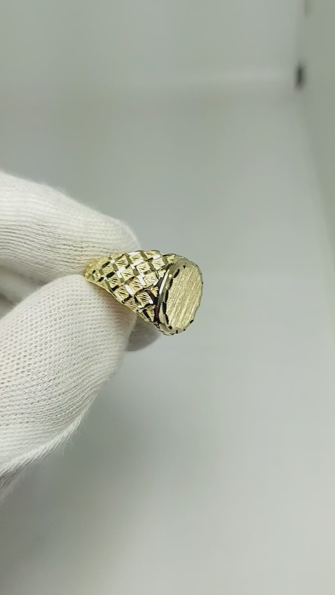 This 10k Gold Chevalière Ring with diamond cut is a truly unique piece that stands out in any collection. With its diamond cut finish and 10k gold material, it's the highest quality piece you can get. Adorn yourself with this beautiful and eye-catching ring today!