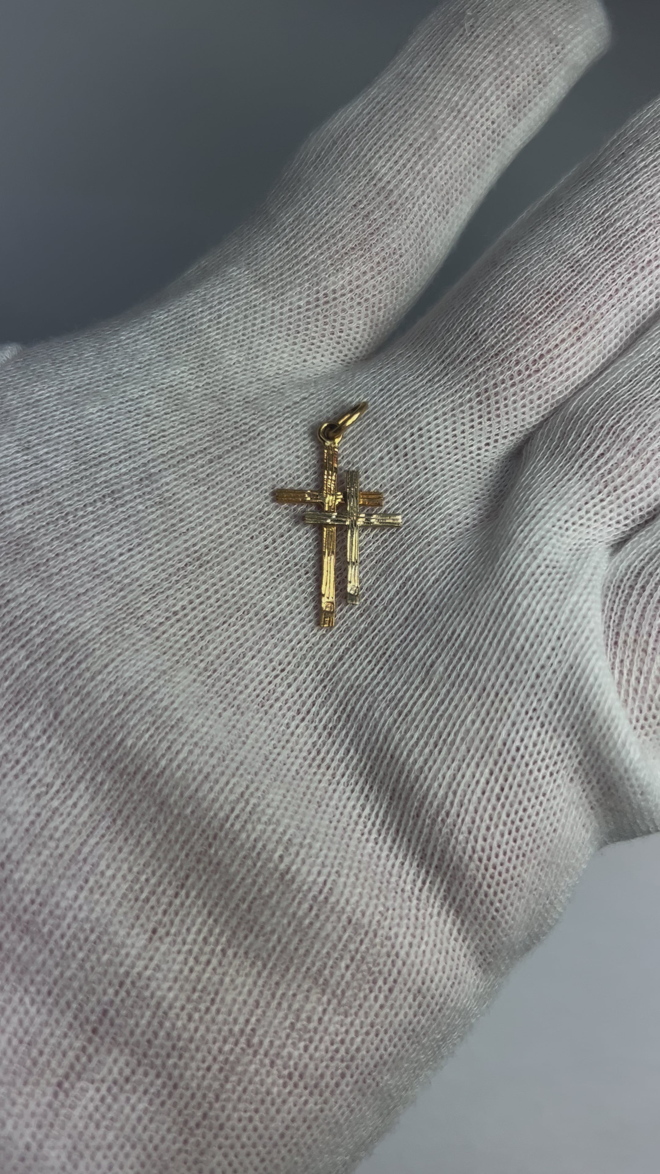 Experience the elegance and uniqueness of our 10k gold double cross. The perfect blend of pink and yellow gold creates a stunning and versatile piece for any occasion. Show off your faith in style and add a touch of luxury to your wardrobe. Elevate your look with our timeless double cross design.