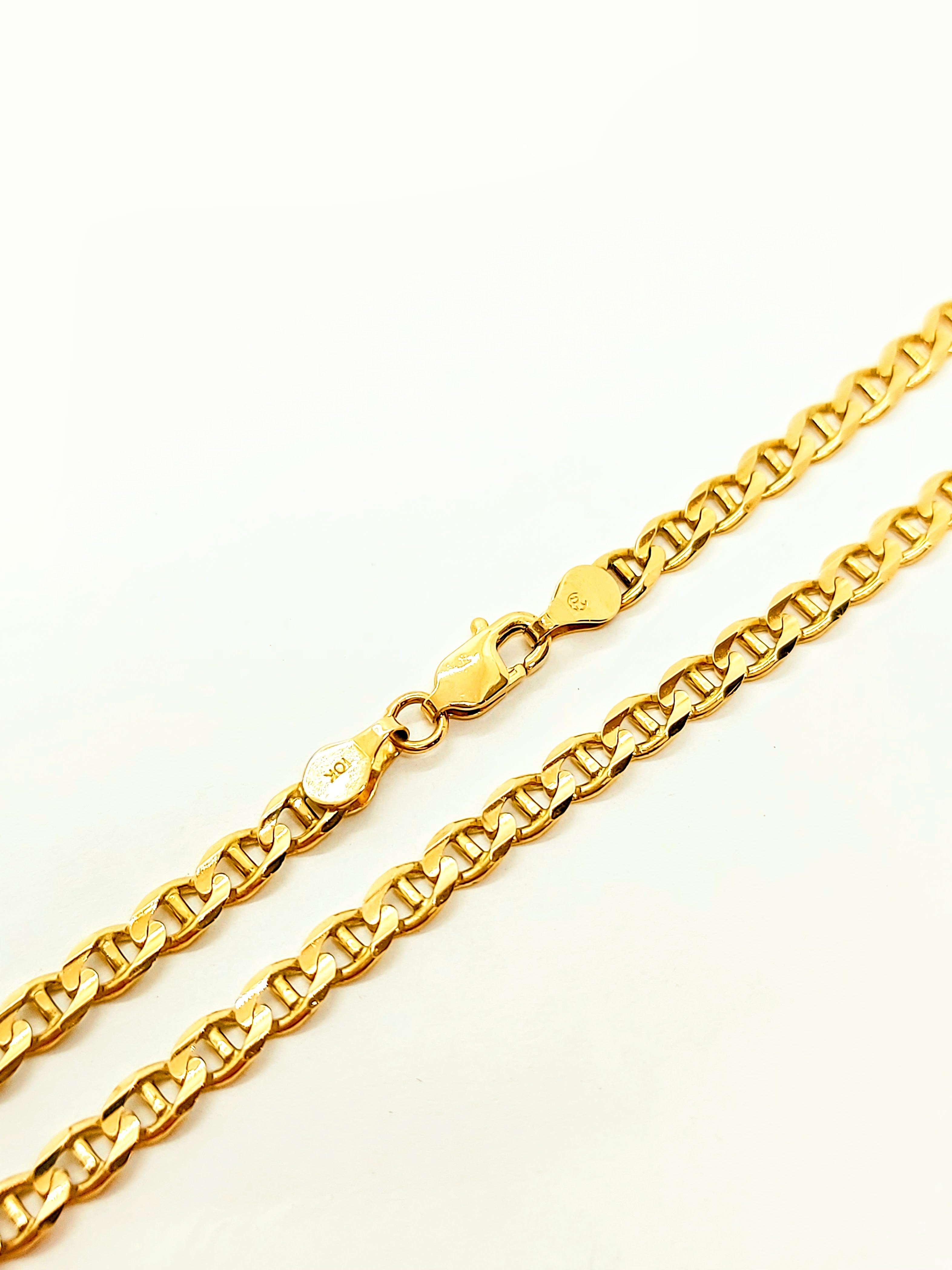 Adorn yourself with a luxurious Italian-made 10k Gold Mariner Chain. Engineered for superior quality, this ~4mm wide chain is secured with a lobster lock for reliable styling. Shine with sophistication and fabulousness in this dazzling gold piece!