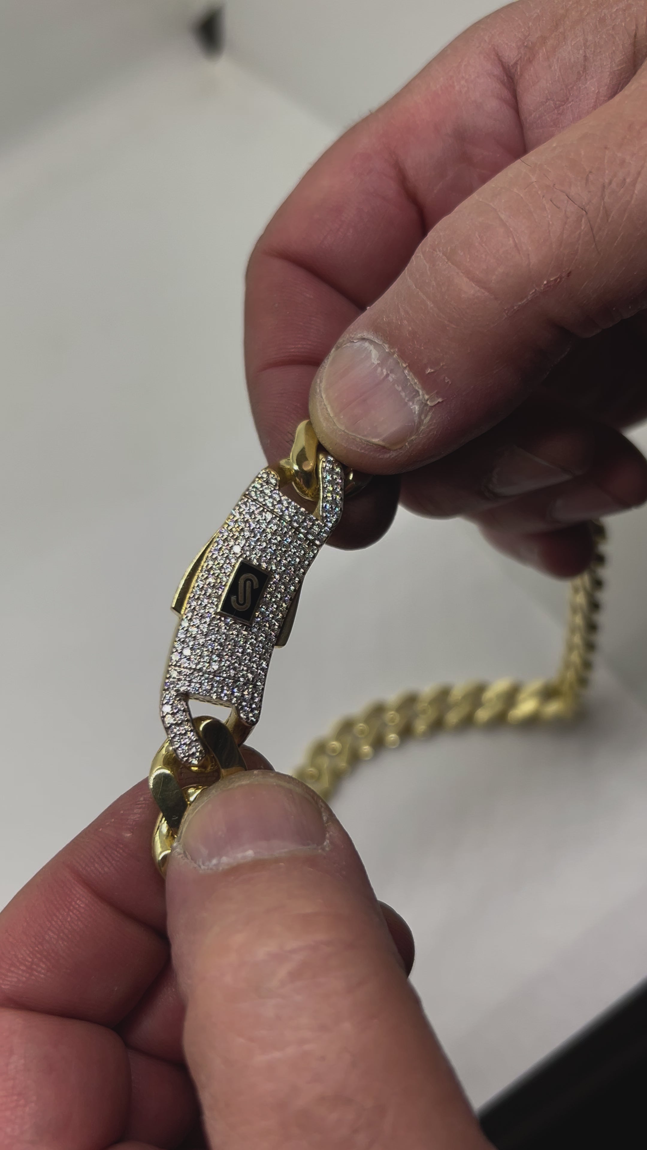 Add a touch of luxury to your style with our 10k Gold Monaco Cuban chain. The real Monaco chain shines brilliantly with its 13mm width, making it a statement piece. Keep it securely in place with the special lock. Elevate your look and feel like royalty with this stunning chain.