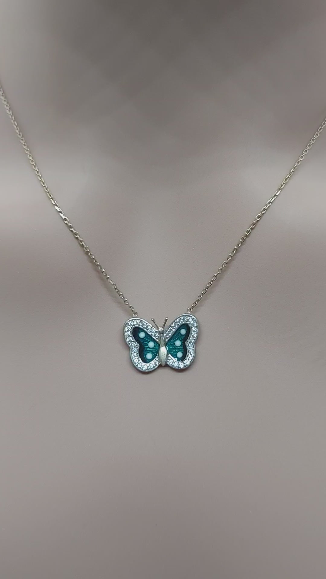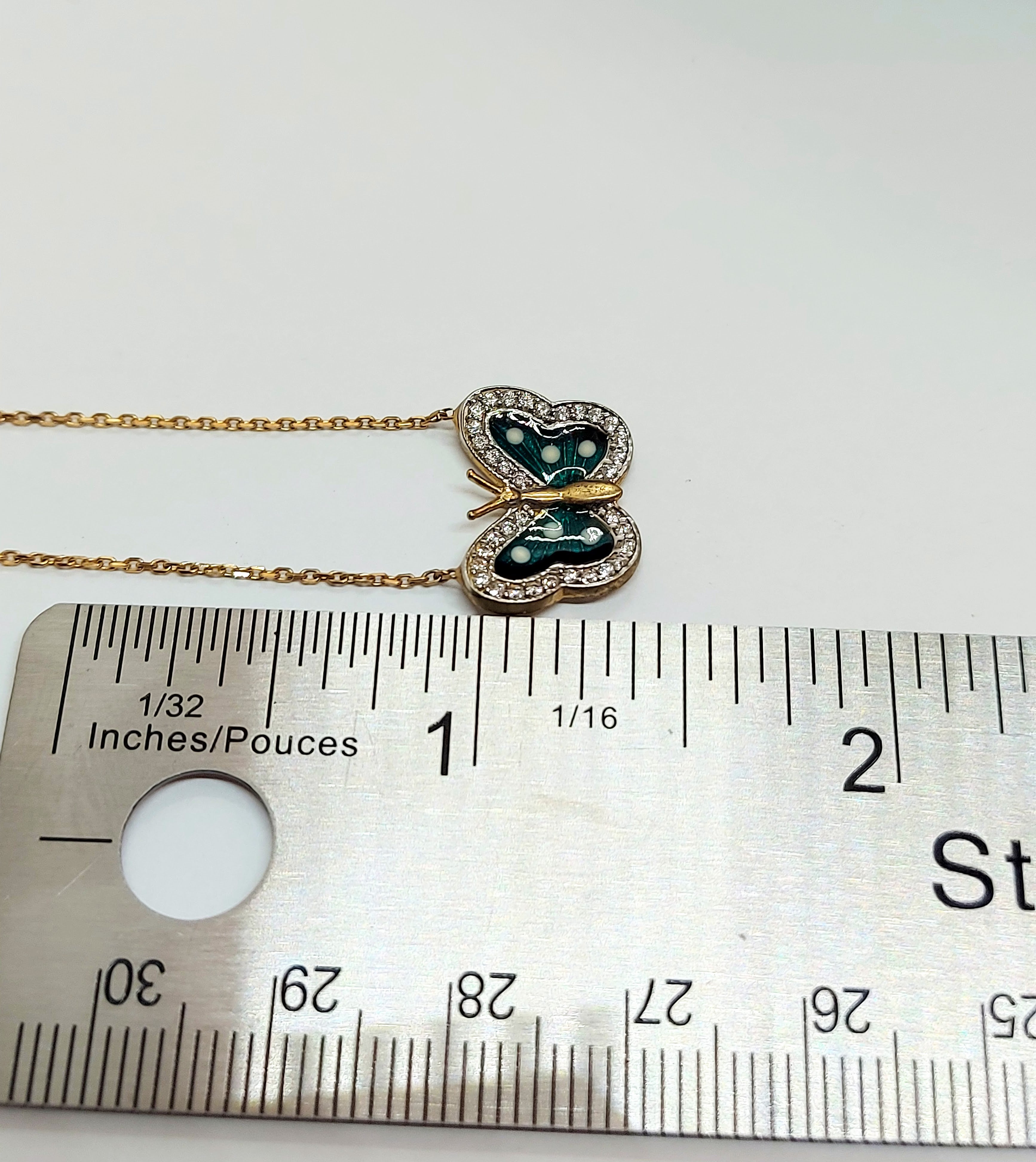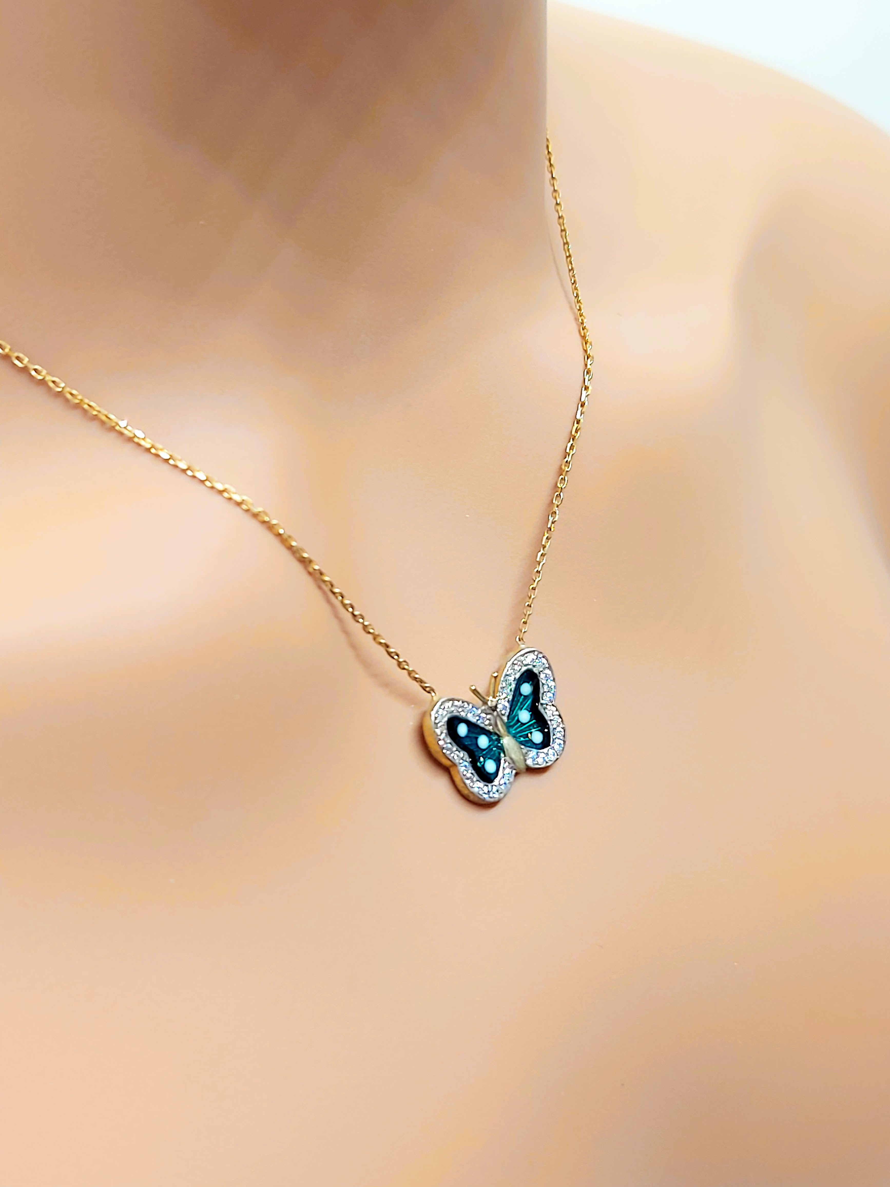 10k Real Solid Gold Green Butterfly Necklace with Diamonds for women