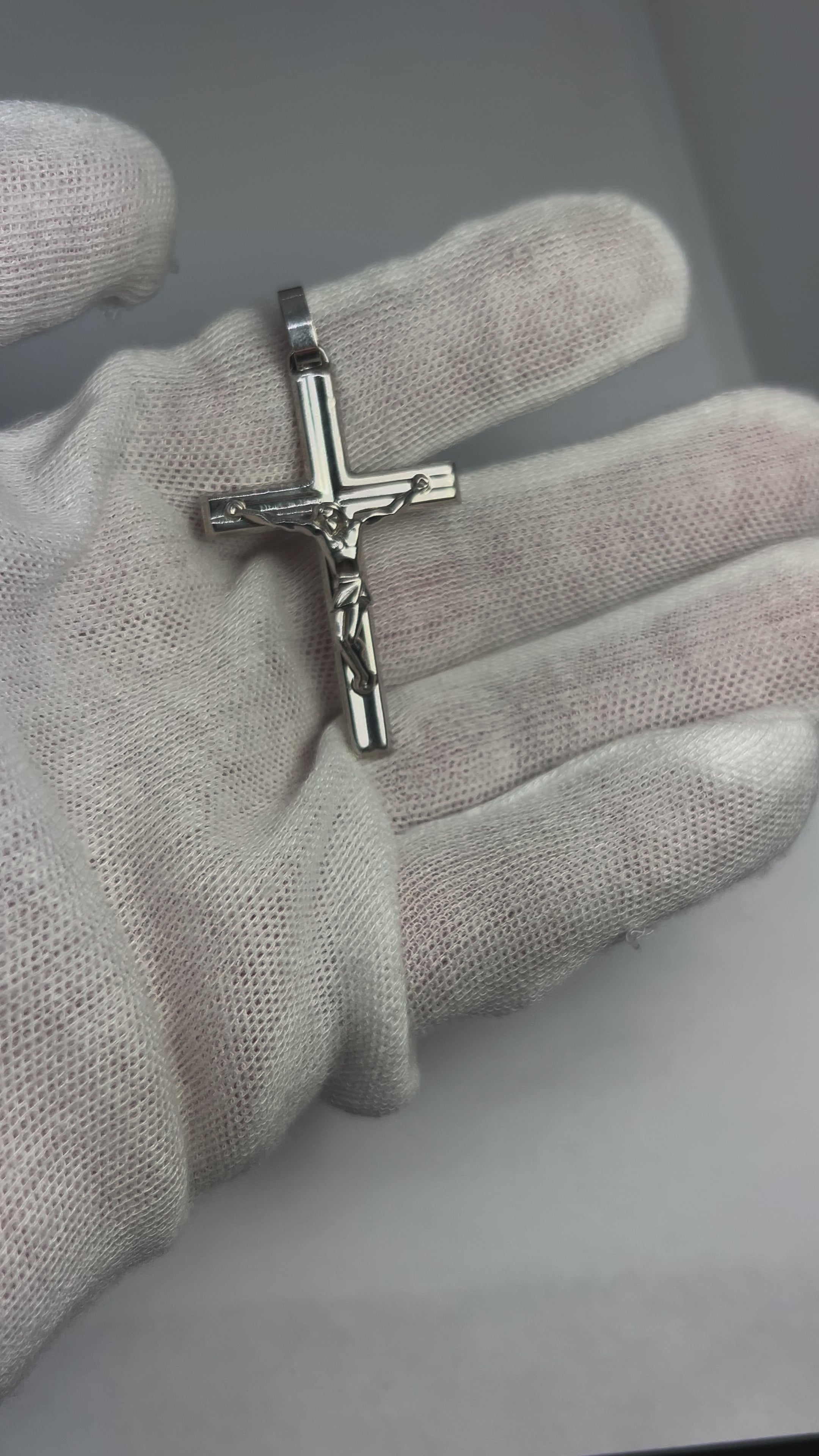 This stunning 10k White Gold cross features an intricately detailed image of Jesus. Measuring 4.5cm in height, 3cm in length, and 2.3mm in width, this cross is a tangible reminder of faith and love. Crafted with high-quality materials, it is a timeless piece that will inspire and uplift you every day.