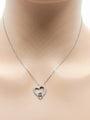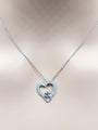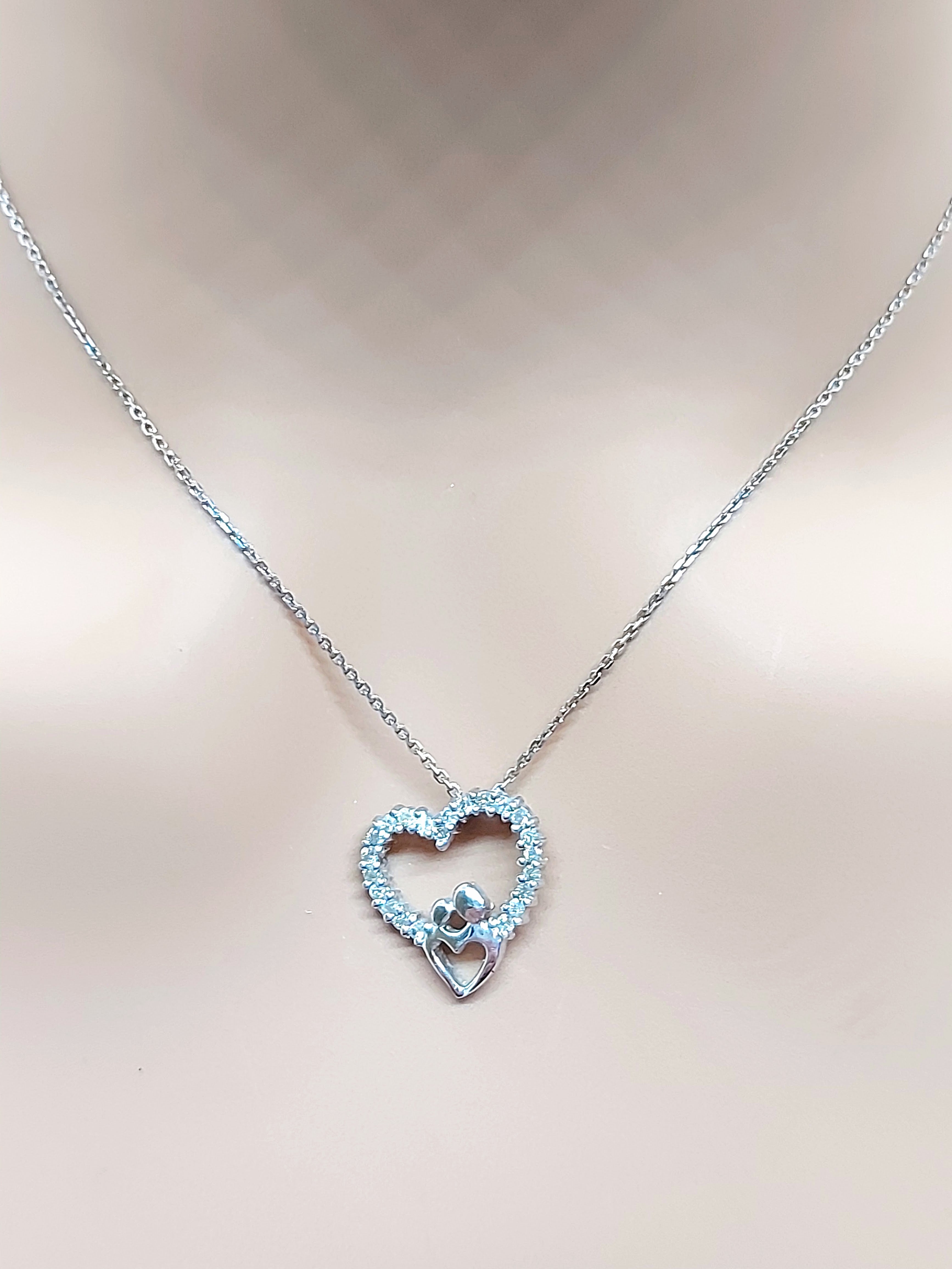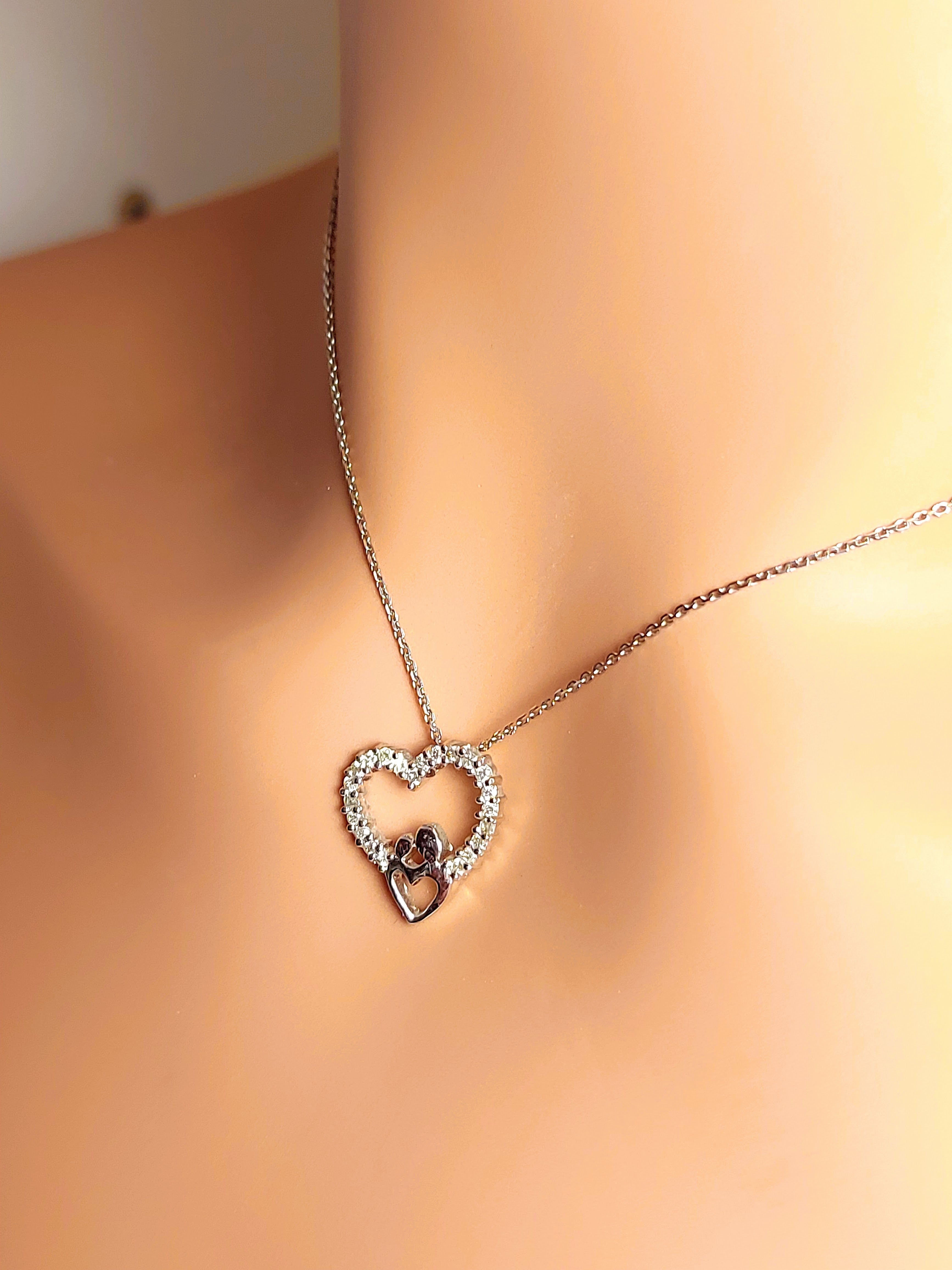14k Real Solid White Gold Double Heart Necklace with Natural Diamonds for Women