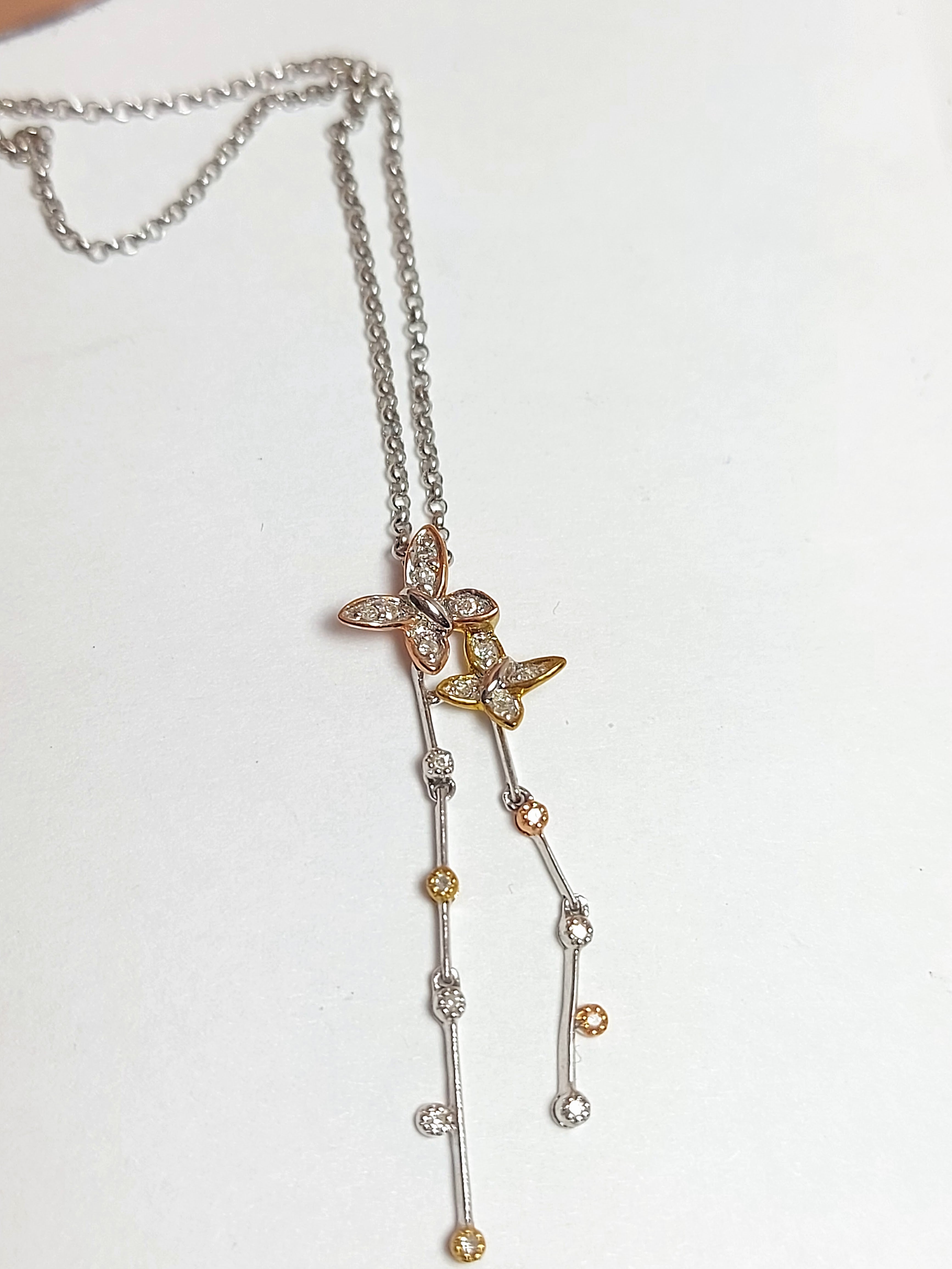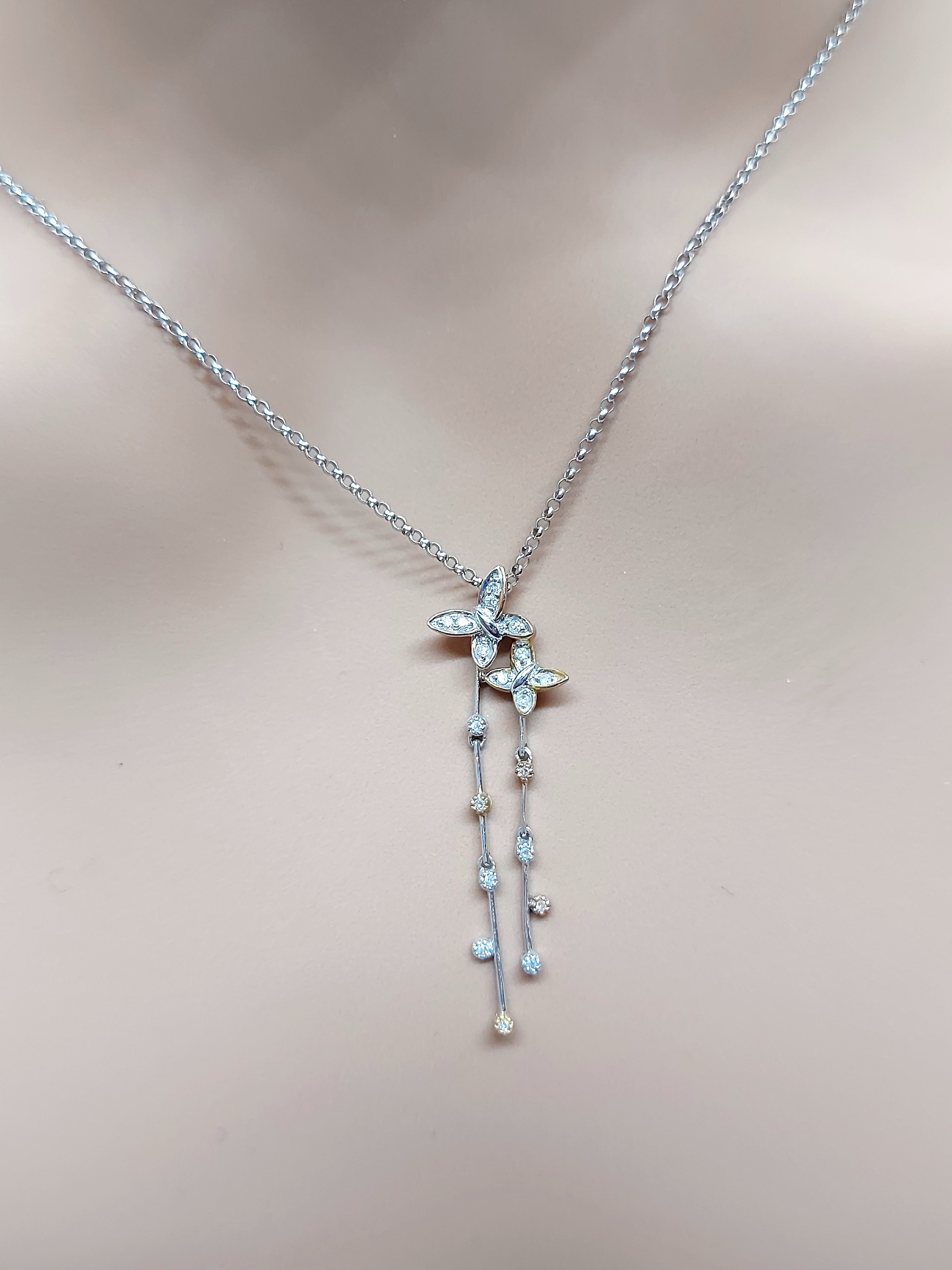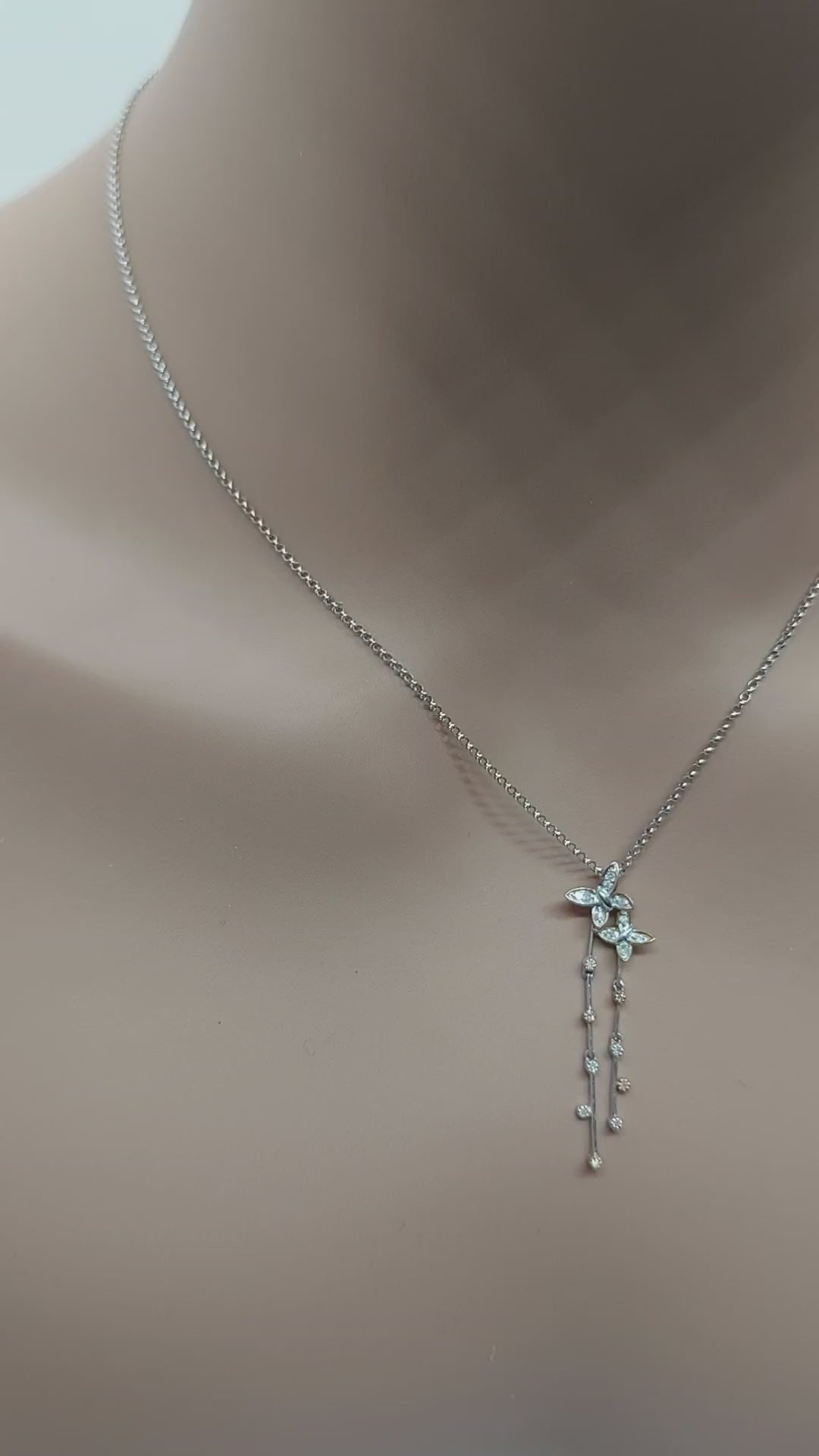 14k Real Solid White Gold Flower Necklace with natural diamonds for women