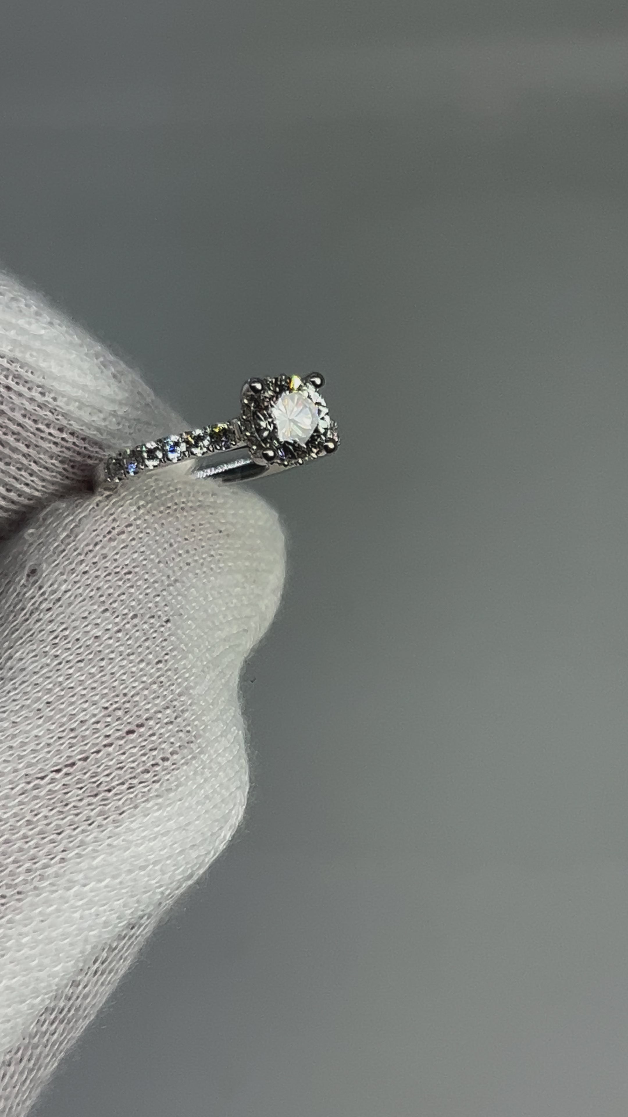 1ct Lab Diamond Round cut Hidden Halo Engagement Ring 14k White Gold