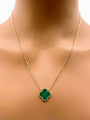 Embrace timeless elegance with this stunning Green Malachite Clover Necklace, a masterpiece crafted in Italy. The rich, swirling patterns of natural green malachite create a captivating focal point that draws the eye and sparks conversation. The four-leaf clover design symbolizes luck and good fortune, making it both a beautiful accessory and a meaningful talisman. Featuring an adjustable chain that fits comfortably from 16 to 18 inches, this necklace adapts to your style and preference. Whether you're dressing up for a special occasion or elevating your everyday look, this Italian-made piece brings sophistication and positive energy to any ensemble.